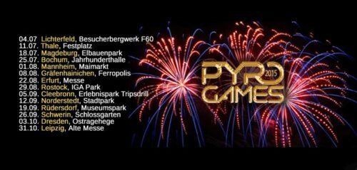 Auch in 2015 präsentiert PP Neuheiten des Lieferprogramms bei den „Pyrogames“ mit jeweils einem Feuerwerk an 11 verschiedenen Orten in Deutschland. Besuchen sie uns gerne.